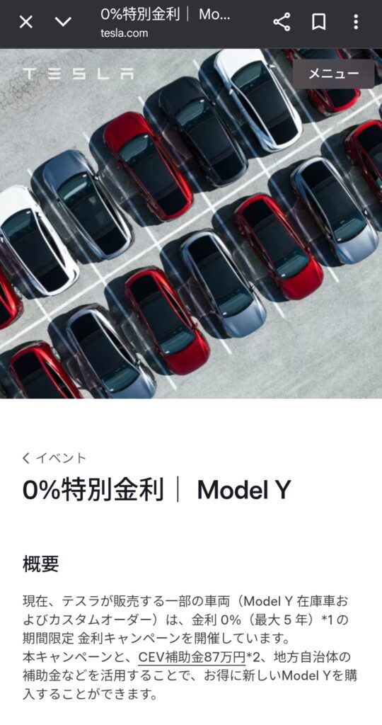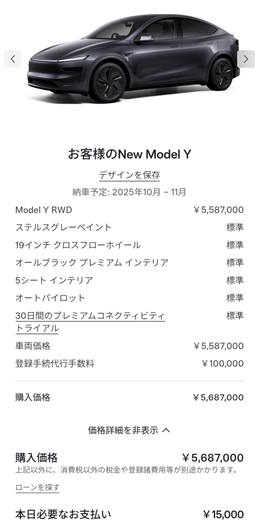 私はこの度、Model Yを0%特別金利で購入しました。