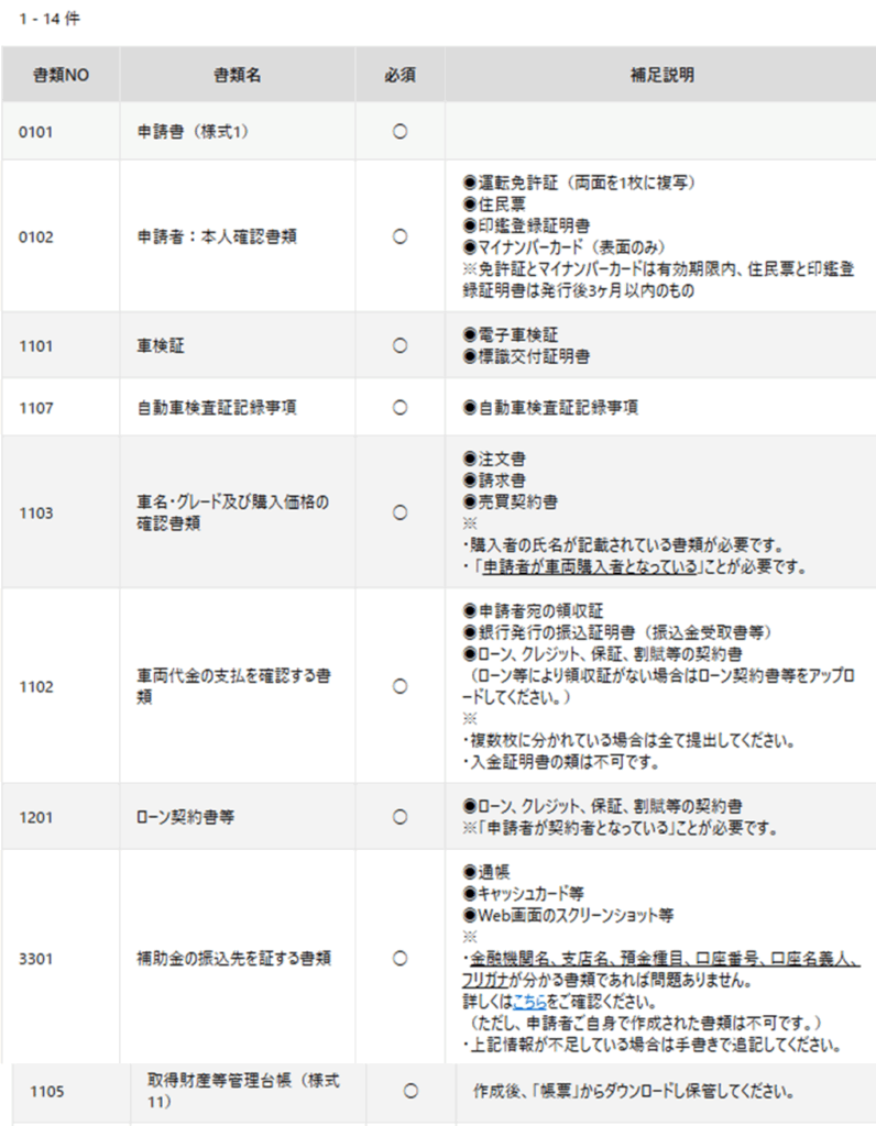 - 車両情報: 補助金を申請する車両の情報(車検証に記載の車両番号、車名など)。